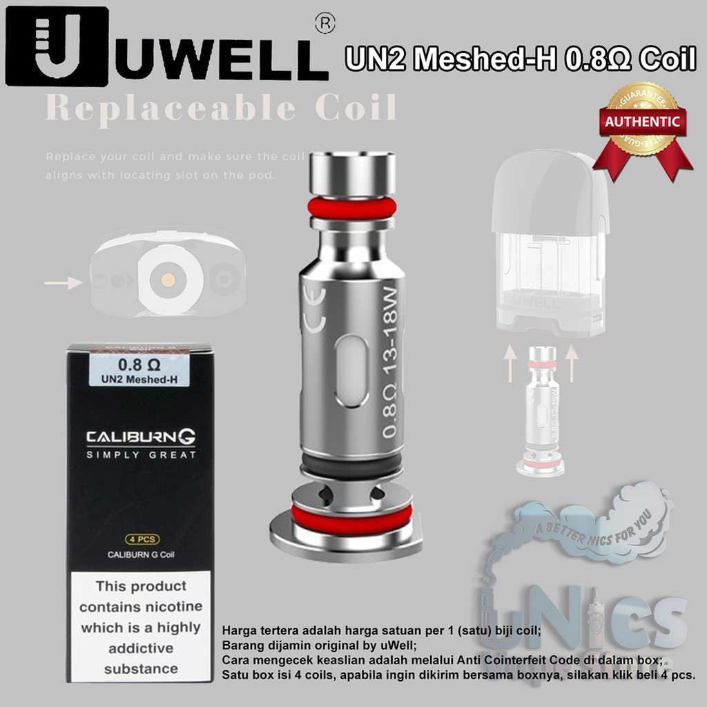 Coil UWELL Caliburn G UN2 Meshed-H 0.8Ω Coils Authentic - Koil CaliburnG Koko Prime G2 GK2 0.8 Ohm Oten uWel